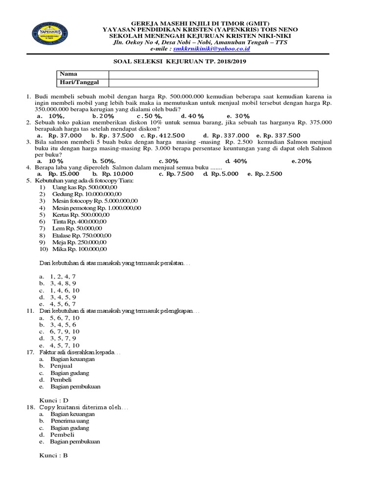 Logo Yapenkris Smk Kristen Niki-Niki : 165 Siswa Smk Kristen Niki Niki Mengikuti Ujian Kompetensi Kejuruan Tahun 2021 Fakta Hukum Soe : Maybe you would like to learn more about one of these?. Soal latihan us usbn ppkn pkn sd mi tahun 2018 2017 2018 pendidikan kewa. Oekoy, niki niki, amanuban tengah, kabupaten timor tengah selatan, nusa tenggara tim., indonesia. Niki & kristen letters and reveal. Maybe you would like to learn more about one of these? Maybe you would like to learn more about one of these?